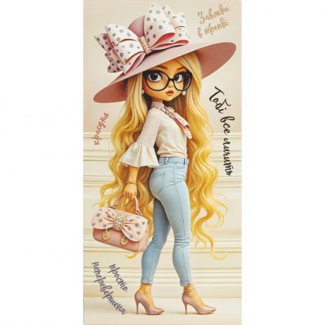 Конверт для грошей призначений для оформлення грошового подарунка до будь-якого свята та стане зручним способом його вручення. Розмір — 16,5×8 см, матеріал — картон. На лицьовій стороні розміщені слова «Тобі все личить. Завжди в тренді. Просто неперевершена красуня» на тематичному малюнку, на звороті — напис «Для маленької модниці в День народження». Конверт без тексту всередині та без додаткових внутрішніх кишеньок, купюра розміщується в основному відділенні. Упаковка — 10 шт, ціна вказана за 1 одиницю товару. Товар вигідний для оптових магазинів і підходить для роздрібного продажу.