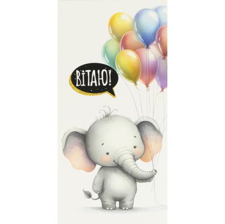 Конверт для грошей призначений для оформлення грошового подарунка до будь-якого свята та стане зручним способом його вручення. Розмір — 16,5×8 см, матеріал — картон. На лицьовій стороні розміщений напис «Вітаю!» на тематичному малюнку. Конверт без тексту всередині та без додаткових внутрішніх кишеньок, купюра розміщується в основному відділенні. Упаковка — 10 шт, ціна вказана за 1 одиницю товару. Товар вигідний для оптових магазинів і підходить для роздрібного продажу.