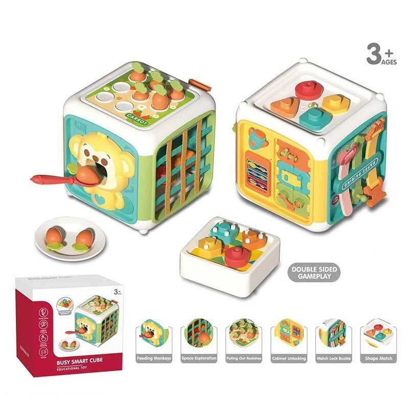 - Куб логічний YL 562 (24) еластичні решітки, пальчикові ігри, гра з морквинами, сортер, рухомі елементи, в коробці