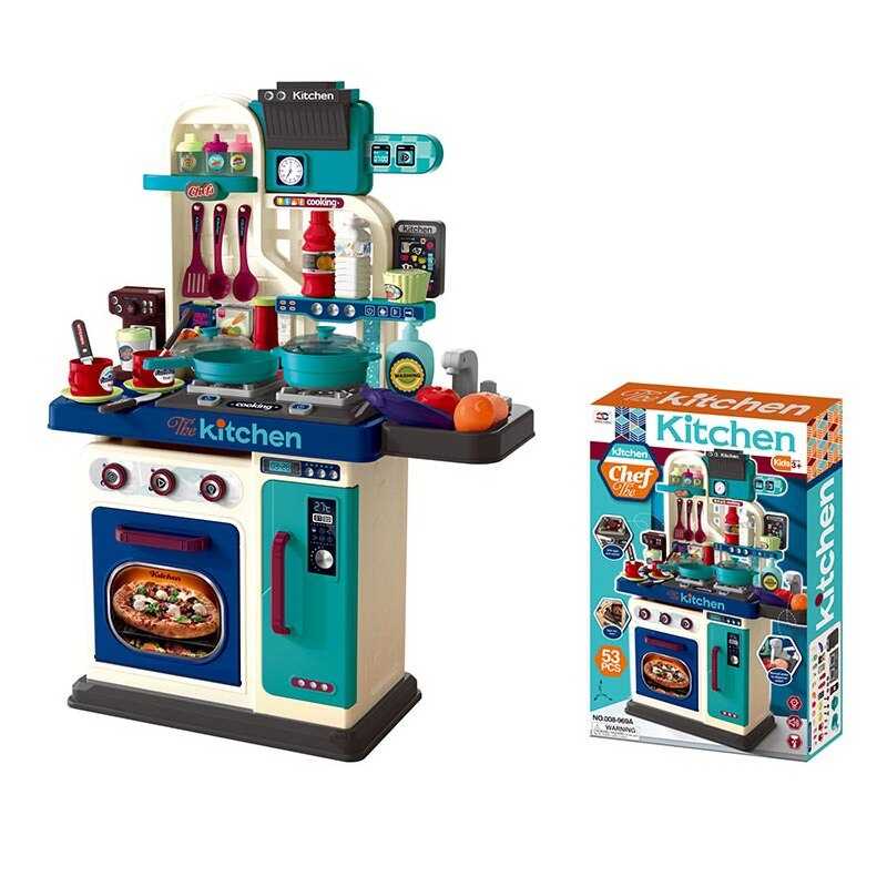 - Кухня 008-969 A (6) висота 69 см, 53 аксесуари, підсвічування, звукові ефекти, помпова подача води, посуд, продукти, кавомашина, в коробці