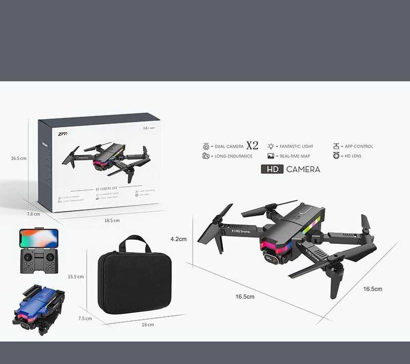 Квадрокоптер на радіокеруванні F 190 (48) підсвічування, знімний акумулятор, пульт, HD камера, сумка для зберігання, в коробці