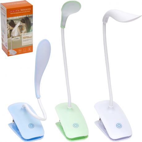 Настільна LED-лампа з прищіпкою підходить для освітлення робочого столу, місця для навчання або зони читання. Висота лампи без плафона — 27 см, довжина плафона — 16 см, розмір основи-прищіпки — 12×6 см. Оснащена гнучкою ніжкою, що дозволяє регулювати кут нахилу та напрямок світла. Основа виконана у вигляді прищіпки, завдяки чому лампу можна закріпити на столі, полиці або іншій поверхні. Лампа має три рівні освітлення та керується сенсорною кнопкою, розташованою на основі. Працює від вбудованого акумулятора або від мережі через USB-кабель довжиною 50 см. Упакована в коробку розміром 16,5×9×6,5 см. Ціна вказана за 1 одиницю товару. Товар вигідний для оптових магазинів і підходить для роздрібного продажу.