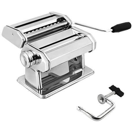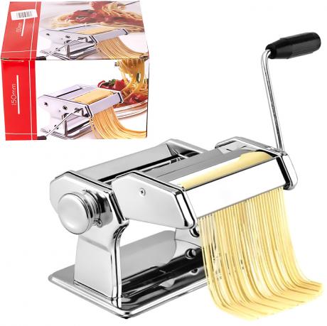 Лапшерізка ручна — зручне рішення для приготування домашньої локшини та розкатування тіста. Розмір — 13×13×19 см, ширина валів — 15 см, вага — 2150 г. Оснащена регулюванням товщини розкатування тіста, що дозволяє отримувати пласти різної товщини. Має 3 режими роботи: розкатування тіста, нарізання тонкої та широкої локшини. Корпус виготовлений з металу, ручка — металева з пластиковою накладкою. Конструкція доповнена нековзними ніжками для стійкості під час роботи та кріпленням до столу за допомогою струбцини. У комплект входять машинка, ручка та затискач. Упакована в коробку розміром 21×16,5×13 см. Ціна вказана за 1 одиницю товару. Товар вигідний для оптових магазинів і підходить для роздрібного продажу.