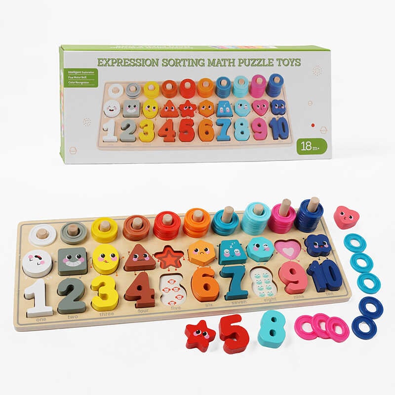Логічна дерев’яна дошка C 74198 (32) дерев’яна, геометричний сортер, цифри, в коробці