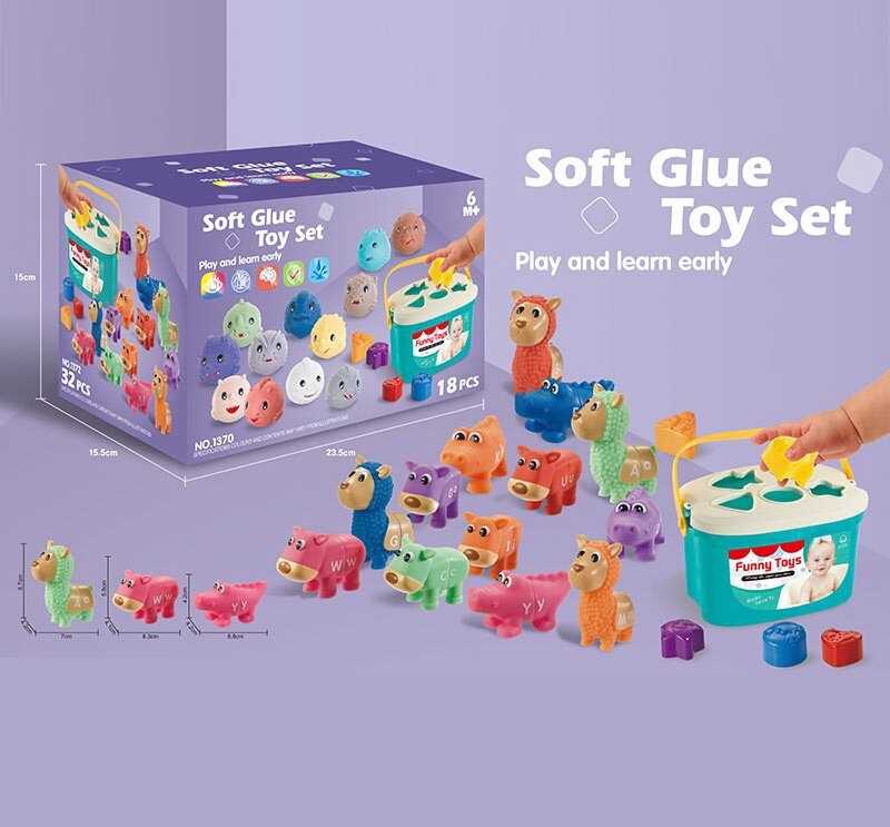 - Логічна гра 1372 (18) 32 елементи, сортер, гумові фігурки тварин, англійська абетка, кольори, форми, в коробці
