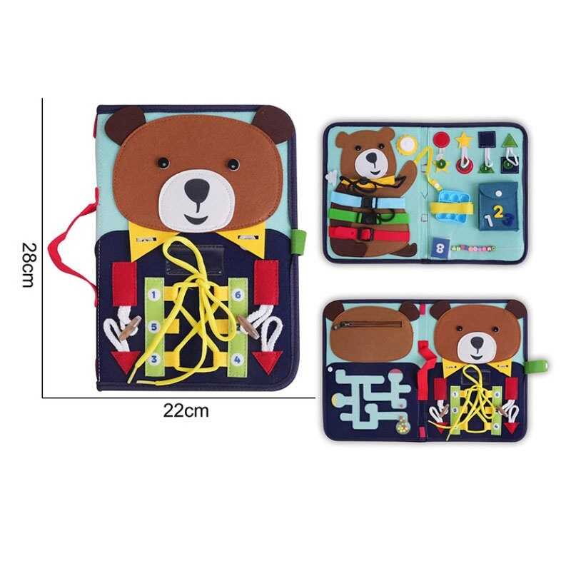 Логічна папка 25022 (50) лабіринт з кульками, липучки, гудзики, шнурівка, поп іт, застібка, геометричні фігури, фрукти на ниточці, цифри, в пакеті
