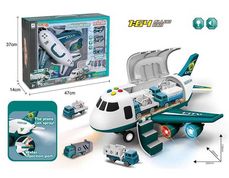- Літак 660 А-315 (12/2) "Спецтехніка", інерція, парогенератор, 3 машинки, на батарейках, світло, звук, дорожні знаки, в коробці