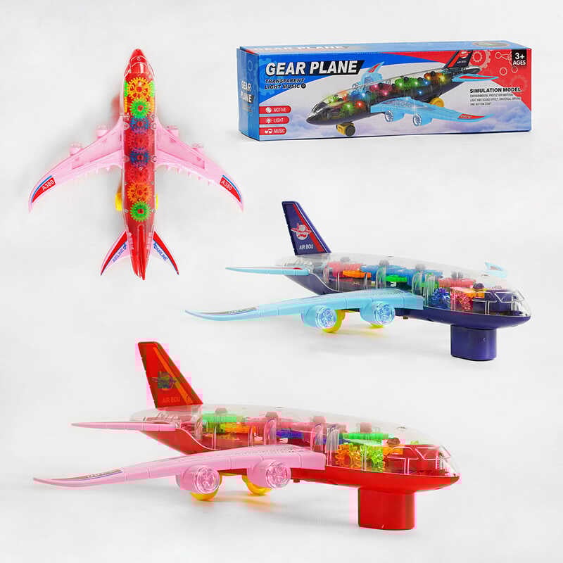 Літак KH 332-5 (120/2) 2 кольори, прозорий корпус, шестерні, світло, звук, колесо вільного ходу, на батарейках, у коробці