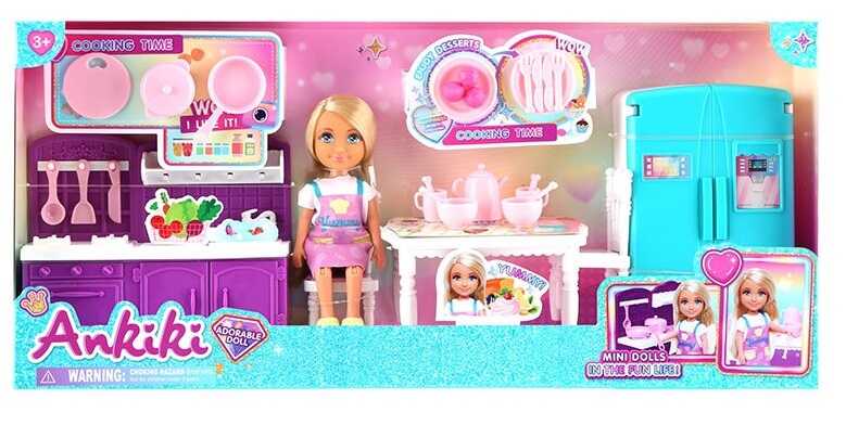 - Лялька 606115 (24) висота: 13 см, холодильник, стіл, стілець, мийка, посуд, аксесуари, в коробці