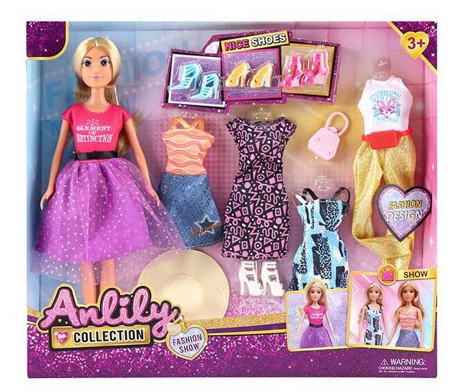 Лялька 616086 (24) висота 30 см, знімний одяг та взуття, 3 додаткові сукні, 4 пари взуття, сумочка, капелюх, барсетка, майка, штани, в коробці