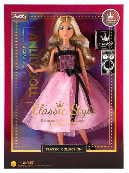 - Лялька 616528 (24) 30 см, шарнірні суглоби, знімний одяг та взуття, 2 кольє, пара сережок, в коробці