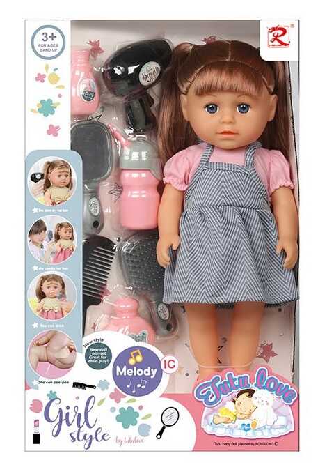 - Лялька 6650 (24) висота - 35 см, музичний чип, п’є, ходить на горщик, фен, пляшечка, гребінець, щіточка для розчісування, дзеркало, знімний одяг, знімне взуття, в коробці