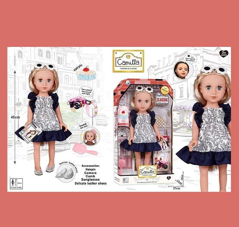 - Лялька A 931 H (24/2) висота: 45 см, імітація скляних очей, закриває очі, прошите волосся, гребінець, аксесуари, в коробці