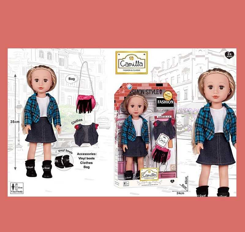 - Лялька A 932 G (24/2) висота: 35 см, імітація скляних очей, прошите волосся, одяг, аксесуари, в коробці