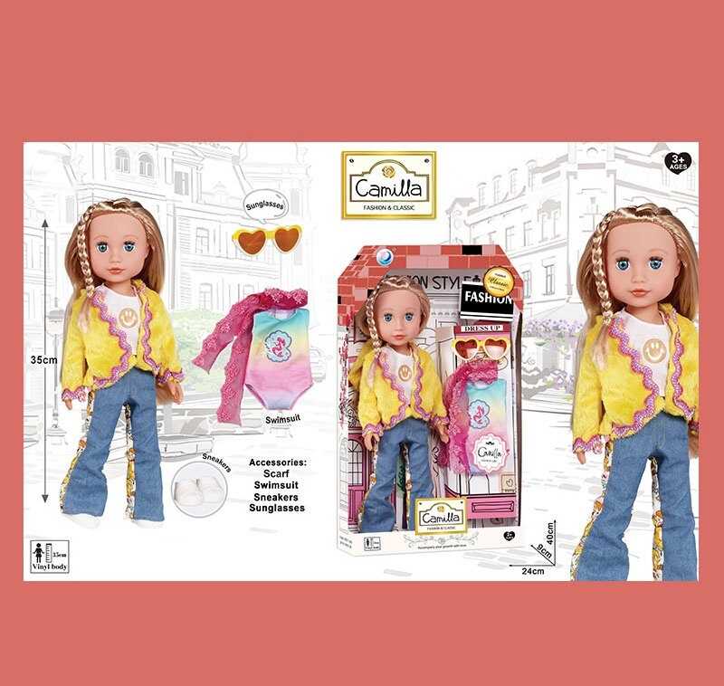 - Лялька A 932 J (24/2) висота: 35 см, імітація скляних очей, прошите волосся, одяг, аксесуари, в коробці