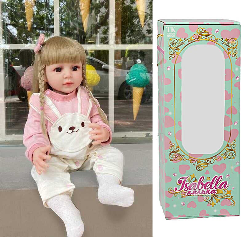 Лялька QM 120 / QM 24120 (12) "TK Group", висота: 50 см, гумова, імітація скляних очей, пустушка, пляшечка, памперс, шкарпетки, прикраса для волосся, в коробці