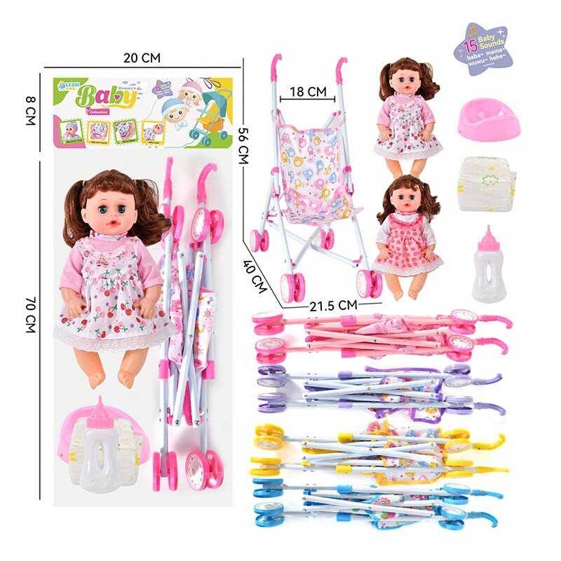 Лялька з візком LZX 17 T-9 (36/2) 4 види, музичний чіп, закриває очі, п’є з пляшечки, ходить на горщик, у пакеті, ВИДАЄТЬСЯ ТІЛЬКИ МІКС ВИДІВ
