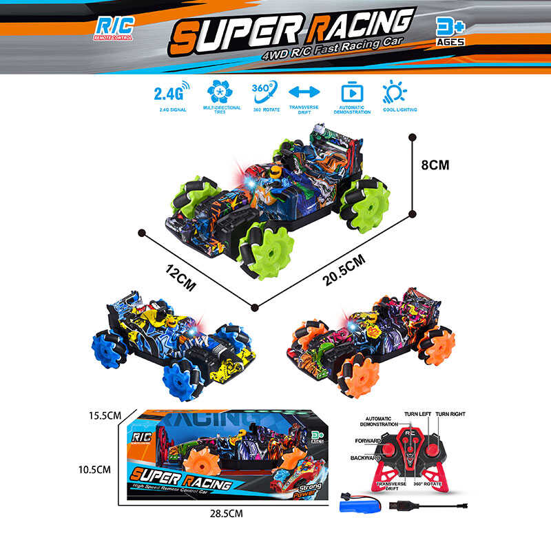 Машина на радіокеруванні 555-711 A (36/2) 3 кольори, підсвічування, обертається на 360°, рух з боку в бік, роликові колеса, демо режим, 4х4, акумулятор 3.7V, пульт 2.4G, в коробці, ВИДАЄТЬСЯ ТІЛЬКИ МІКС ВИДІВ
