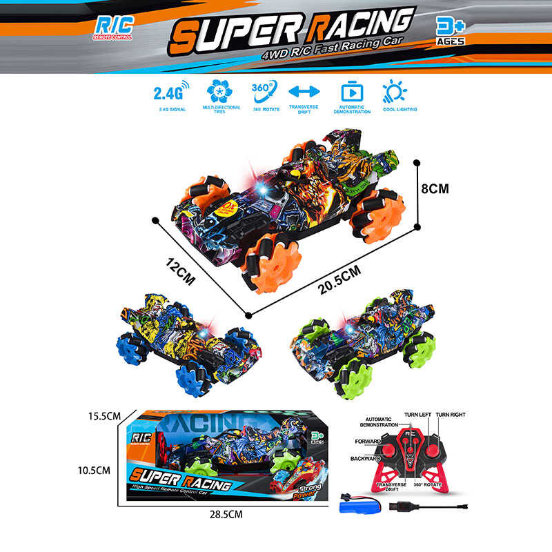 Машина на радіокеруванні 555-713 A (36/2) 3 кольори, підсвічування, обертається на 360°, рух з боку в бік, роликові колеса, демо режим, 4х4, акумулятор 3.7V, пульт 2.4G, в коробці, ВИДАЄТЬСЯ ТІЛЬКИ МІКС ВИДІВ