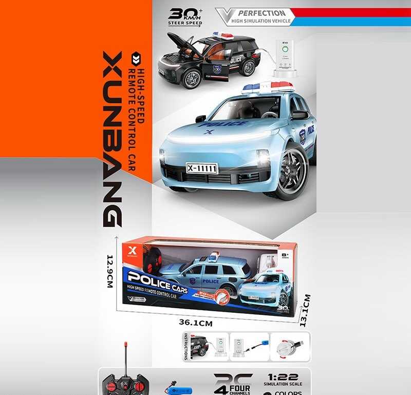 - Машина на радіокеруванні KS 122 Y (36) 2 кольори, "Поліція", акумулятор 3.7V, пульт 49 MHZ, масштаб 1:22, підсвічування, гумові шини, зарядна станція, в коробці