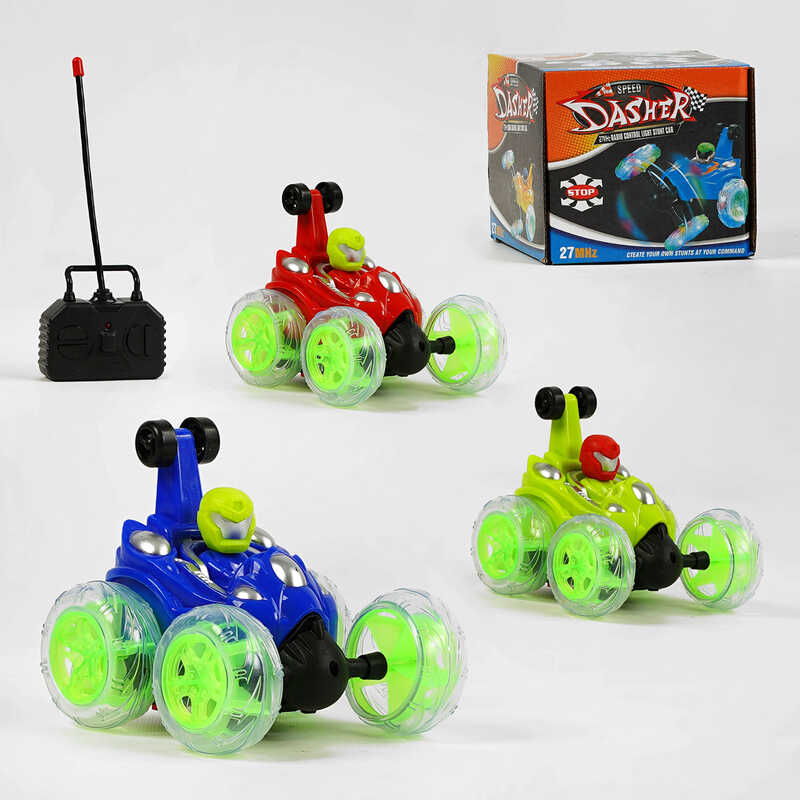 - Машинка 8977 (108) на р/к, 3 кольори. на батарейках, підсвічування, перевертиш, обертається передня вісь, пульт керування 27 MHz, у коробці