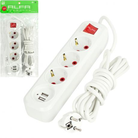 - Мережевий подовжувач 3м на 3 розетки та 2 USB з вимикачем ALFUSB3M