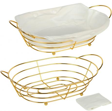 Металева фруктівниця-кошик з тканинною вставкою — практичне та стильне рішення для зберігання й подачі фруктів, хліба або солодощів. Міцний металевий каркас забезпечує стійкість і довговічність, а тканинна вставка захищає продукти та надає виробу охайного вигляду. Підходить для використання на кухні, обідньому столі або під час сервірування.