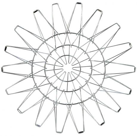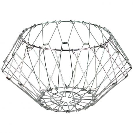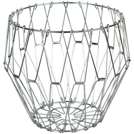 Металева фруктовниця-кошик трансформер — оригінальне та практичне рішення для сервірування та зберігання фруктів. Конструкція дозволяє змінювати форму виробу: кошик можна скласти приблизно у 5 різних видів, підлаштовуючи під інтер’єр або кількість продуктів. Міцний металевий каркас забезпечує стійкість і довговічність, а відкрита форма сприяє хорошій вентиляції фруктів.
