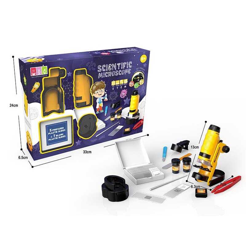 - Мікроскоп 20210 A-2 (24/2) розмір: 6.3х7х13 см, підсвічування, 50-120х збільшення, підсвічування, фокусування, 2 колби, предметні скельця, пінцет, інструменти, текстильний мішечок, в коробці