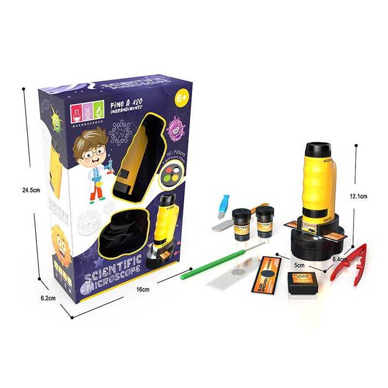 - Мікроскоп 2120 A-1 (72/2) розмір: 5х6.4х12.1 см, підсвічування, 120х збільшення, підсвічування, фокусування, 2 колби, предметні скельця, пінцет, інструменти, текстильний мішечок, в коробці