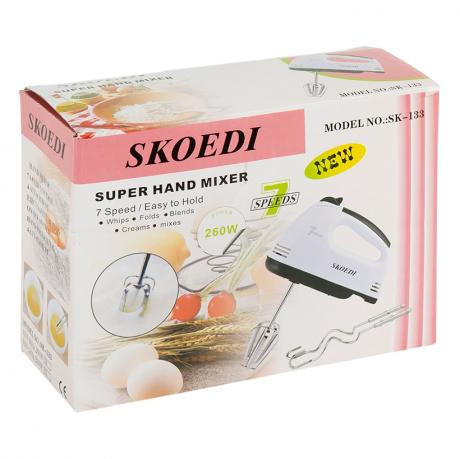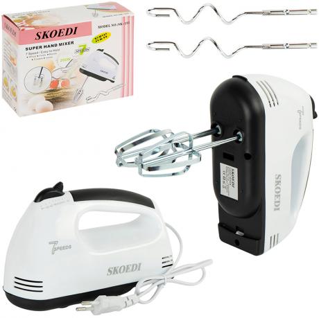 Міксер ручний — зручний прилад для приготування та змішування інгредієнтів у домашніх умовах. Розмір — 7×12×18 см, довжина шнура — 67 см, потужність — 260W, має 7 швидкостей. Оснащений перемикачем швидкостей, що дозволяє регулювати інтенсивність роботи залежно від задачі. У комплект входять знімні насадки: 2 вінчики для збивання та 2 спіральні насадки для замішування тіста, довжина кожної — 15 см. Корпус виготовлений з пластику, конструкція зручно лежить у руці. Підходить для приготування тіста, кремів, соусів та інших страв. Постачається в коробці розміром 7,5×13,5×18,5 см, у комплекті інструкція англійською мовою. Вага — 350 г. Ціна вказана за 1 одиницю товару. Товар вигідний для оптових магазинів і підходить для роздрібного продажу.