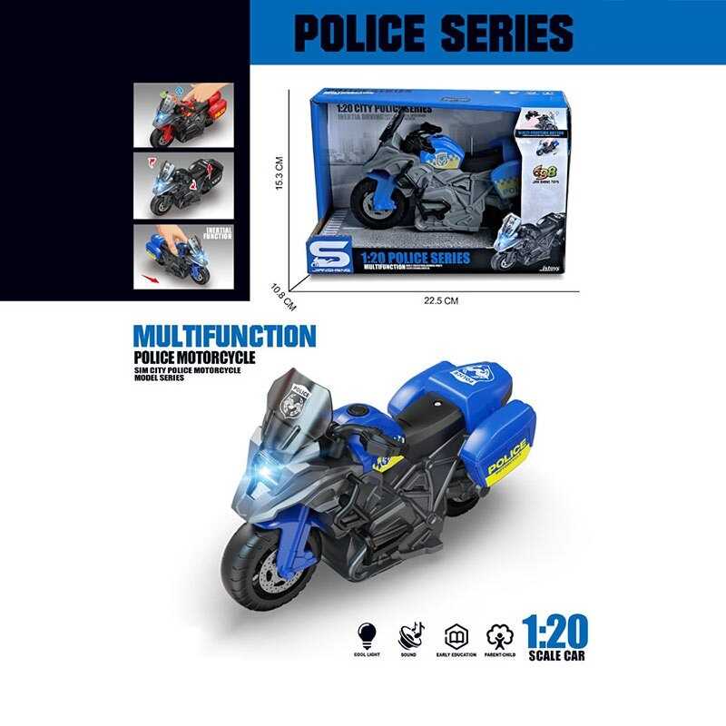 Мотоцикл JS 196 E (72/2) "Поліція", світло, звук, інерція, кермо повертається, масштаб 1:20, в коробці