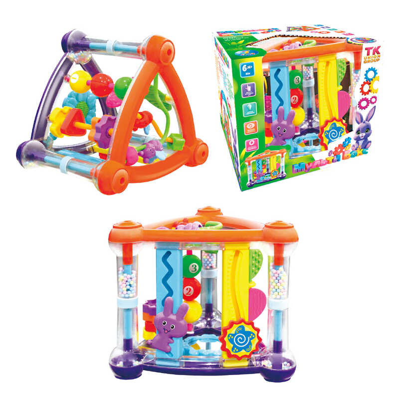 Мультибокс 45323 (12/2) "TK Group", брязкальце, пальчиковий лабіринт, дзеркало, рахівниця, пальчикові ігри, в коробці