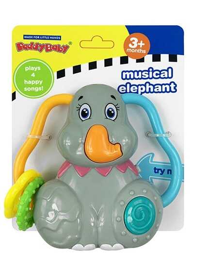 - Музичне брязкальце 0889 (96) “Слоник”, на батарейках, підсвічування, мелодії, прорізувачі, звуки, на листі