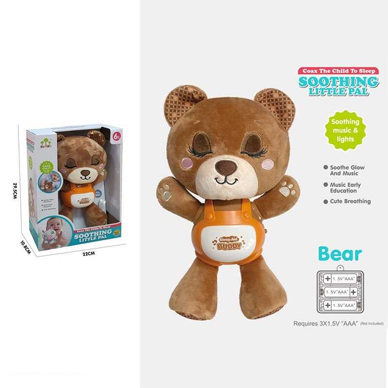 Музичне брязкальце SL 88054 (24/2) "Ведмежа", на батарейках, мелодії, звук дихання, підсвічування, шелесткі елементи, в коробці