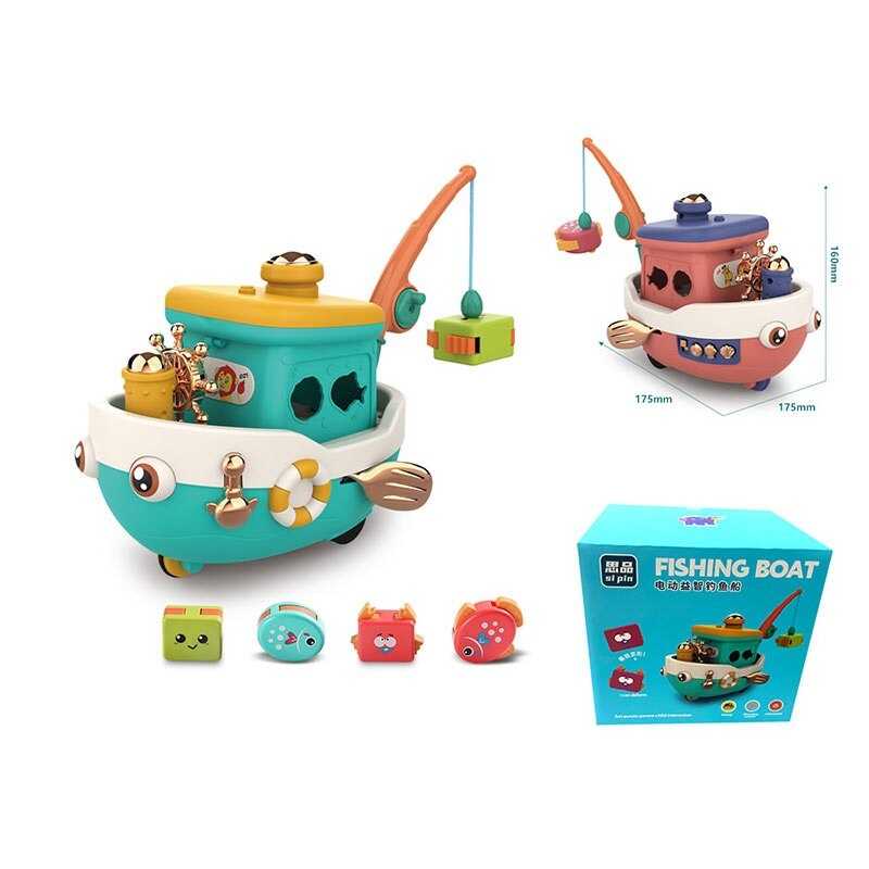 Музичний катер 9914 C (48/2) 2 кольори, 2 режими гри, магнітна риболовля, звуки, підсвічування, мелодії, їде вперед, на батарейках, руль-тріскачка, рухомі елементи, в коробці