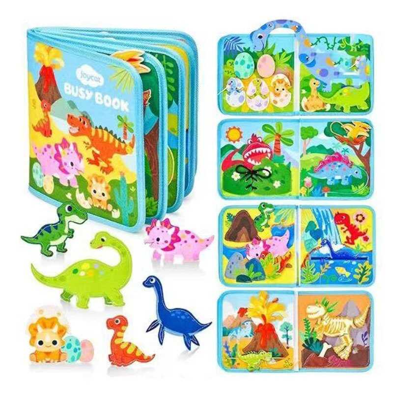 М'яка книжка-бізіборд 25009 (35) "Динозаври", фетр, пальчикові ігри, шнурівка, елементи на липучках, в пакеті
