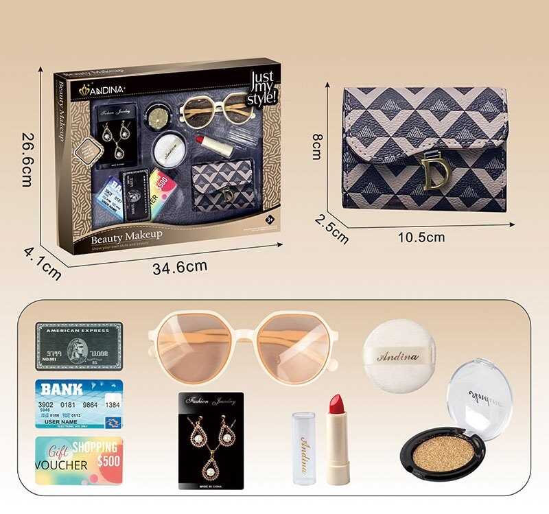 - Набір аксесуарів 616-5 (60) гаманець, окуляри, прикраси, імітація косметики, муляжі карток, в коробці
