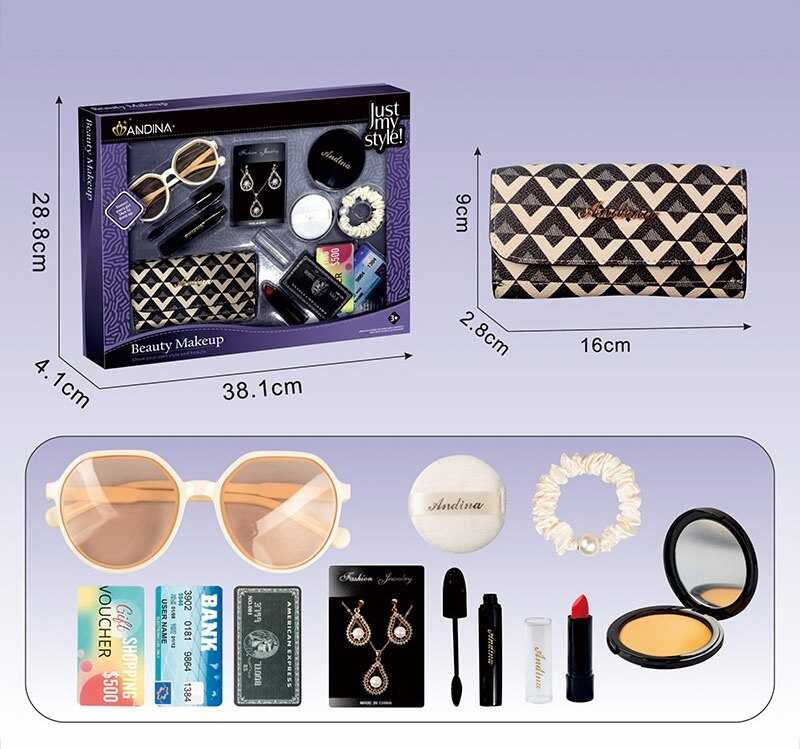 - Набір аксесуарів 626-4 (60) гаманець, окуляри, прикраси, імітація косметики, муляжі карток, резинка, в коробці