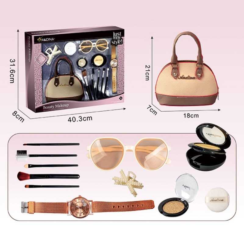 - Набір аксесуарів 656-7 (36) сумочка, імітація косметики, функціональний годинник, окуляри, пензлики, крабик, в коробці