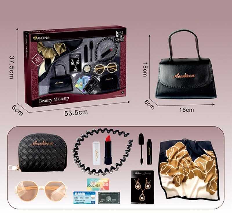 - Набір аксесуарів 676-5 (24) сумочка, хустка, окуляри, гаманець, прикраси, імітація косметики, обруч, в коробці