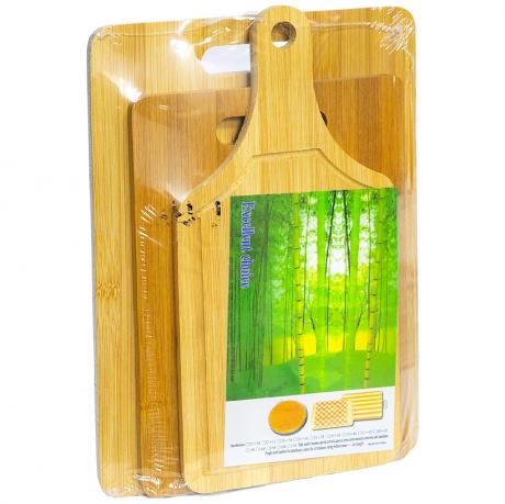 Набір бамбукових обробних дощок — зручний і практичний варіант для щоденного використання на кухні. До комплекту входять 3 дошки різних розмірів: 33×16×1 см, 20×28×1 см та 24×33×1 см, що дозволяє комфортно готувати різні продукти. Дошки виготовлені з натурального бамбука — екологічного, міцного та безпечного для здоров’я матеріалу. Поверхня не вбирає сторонні запахи, стійка до зношування та зберігає природний колір. Підходять для нарізання овочів, фруктів, м’яса, хліба й подачі закусок. Практичний набір для дому.
