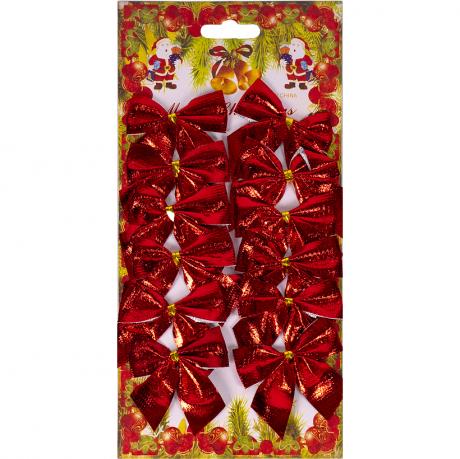 Цей набір включає 12 червоних бантиків. Кожен бантик має розмір 5,5 на 5,5 см. В одній упаковці знаходиться 50 таких наборів.