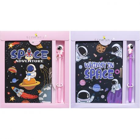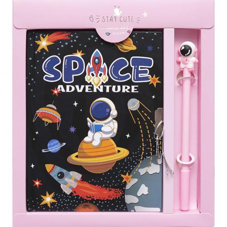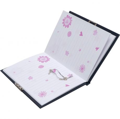 Блокнот на спіралі з замком і двома ключиками, 48 аркушів кремового кольору з рожевим оформленням у лінію. У комплекті синя гелева ручка. Розмір блокнота 13,5*18 см.
