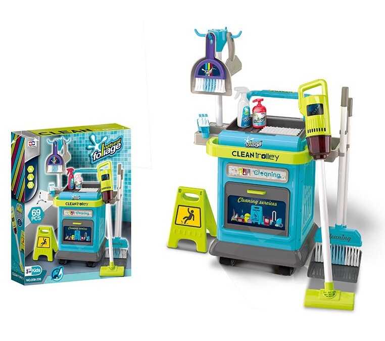 Набір для прибирання 008-206 (8) висота 63 см, 40 елементів, пилосос втягує кульки, візок для перевезення, 2 віники, 2 совки, щітка, ганчірки, губка, в коробці