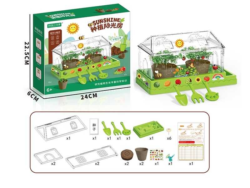 Набір для садівництва HX 301 (48) теплиця, насіння, садові інструменти, ґрунт, горщики, лійка, наліпки, в коробці