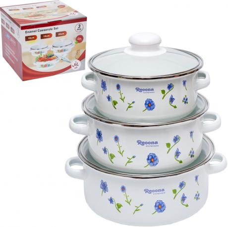 Набір емальованих каструль 3шт 1,2/1,8/2,3л з кришками D16/18/20см 111DG-5086