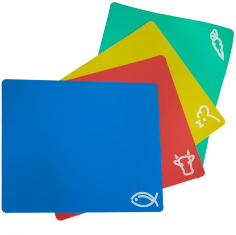 Набір гнучких обробних дощок призначений для нарізання та підготовки продуктів на кухні. Розмір однієї дошки — 30×25 см. У наборі — 4 шт. Дошки виготовлені з харчового пластику — поліпропілену РР, гнучка конструкція дозволяє зручно пересипати нарізані продукти у посуд. Підходять для обробки овочів, фруктів, м’яса та інших продуктів. Компактний набір зручний для щоденного використання на кухні. Ціна вказана за набір. Товар вигідний для оптових магазинів і підходить для роздрібного продажу.