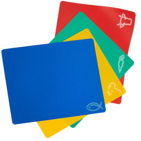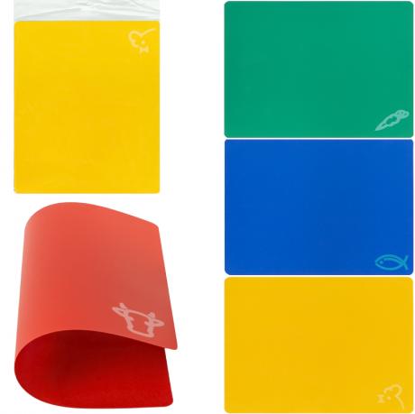 Набір гнучких обробних дощок призначений для нарізання та підготовки продуктів на кухні. Розмір однієї дошки — 34×27 см. У наборі — 4 шт. Дошки виготовлені з харчового пластику — поліпропілену РР, гнучка конструкція дозволяє зручно пересипати нарізані продукти у посуд. Підходять для обробки овочів, фруктів, м’яса та інших продуктів. Компактний набір зручний для щоденного використання на кухні. Ціна вказана за набір. Товар вигідний для оптових магазинів і підходить для роздрібного продажу.