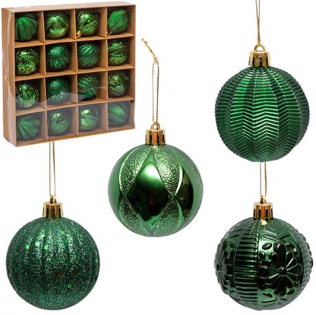 Набір ялинкових прикрас 6279-7 (16 шт.) — класичний комплект куль у насиченому зеленому кольорі, що символізує свіжість, гармонію та новорічний настрій. У наборі 16 пластикових куль діаметром 6 см із різним дизайном — матові, глянцеві, з блискітками та рельєфним орнаментом. Поєднання фактур створює ефектну гру світла й надає ялинці виразного вигляду. Прикраси виготовлені з міцного, легкого пластику, безпечного для дітей і тварин. Упаковані у картонну коробку з прозорою кришкою розміром 24×24×6 см, зручну для зберігання чи як подарунковий варіант. Ідеально підходять для декору ялинки, оселі, офісу або святкової вітрини.